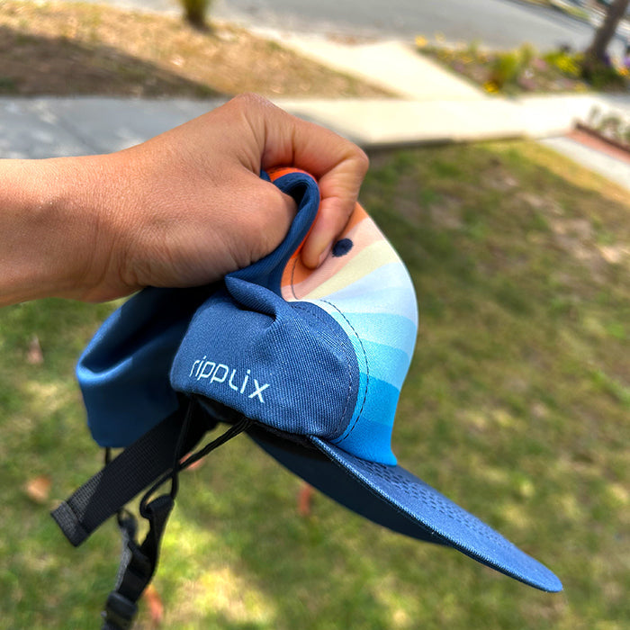 from 18 reviewsI love my Ripplix hat! It can be adjusted to sit snug on the head and survives the wipeouts without falling off. Being able to flip the visor back is so nice, especially when paddling into waves to better see your surroundings. I love that it's sustainably made by a female owned local business. It's also just super cute!! 😍